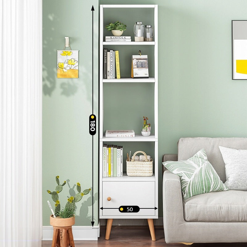 Bibliotecă albă în picioare, raft înalt în stil scandinav, dulap pentru mansardă