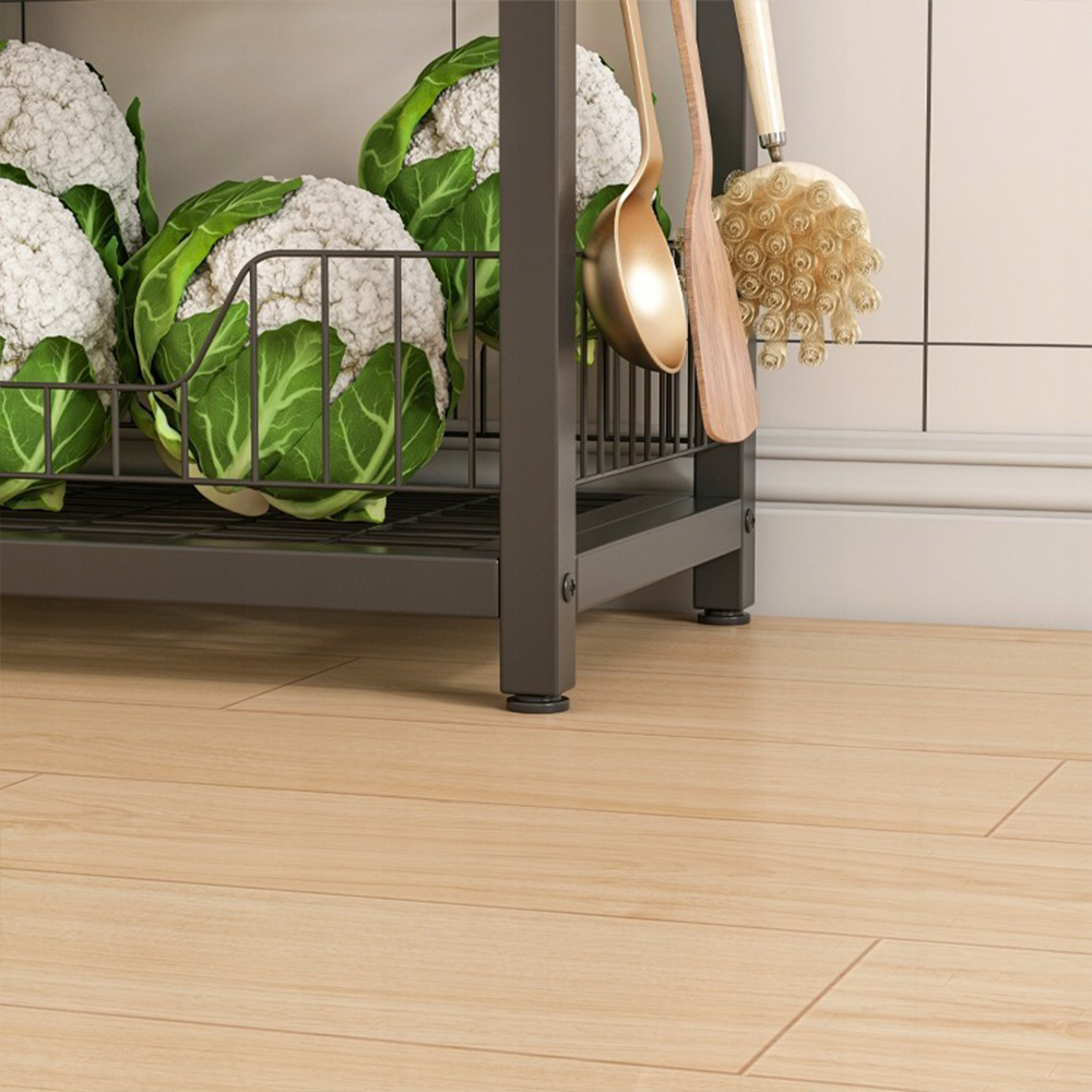 Etajera are un cadru metalic stabil și este prevăzută cu rafturi spațioase, dispuse pe mai multe niveluri – perfecte pentru depozitarea vaselor, ustensilelor de bucătărie, condimentelor, cărților de bucate sau decorațiunilor. Datorită stilului retro-industrial, atrage privirea și se potrivește atât în bucătării rustice, cât și moderne.