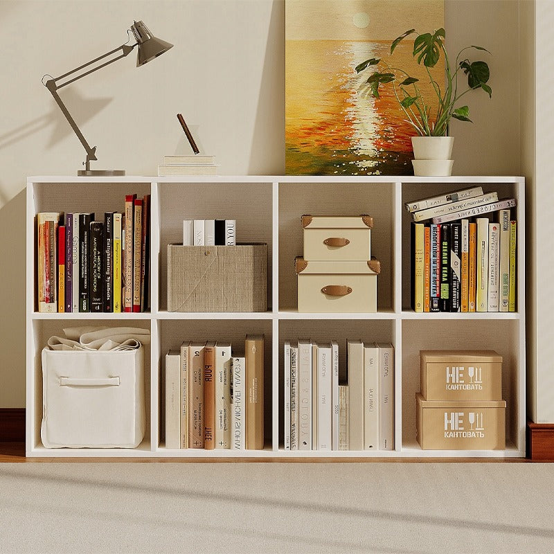 Bibliotecă deschisă, comodă cu 4x2 sertare cubice, spațioasă, albă, pentru cărți, birou, modernă