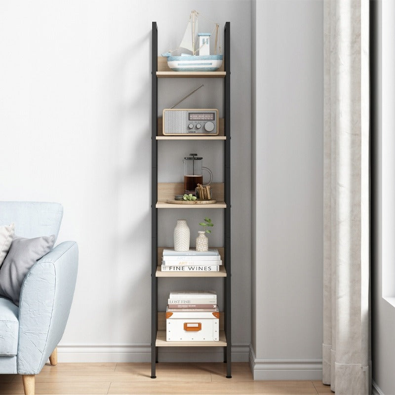 Bibliotecă industrială înaltă, maro deschis, 5 rafturi, stil scară