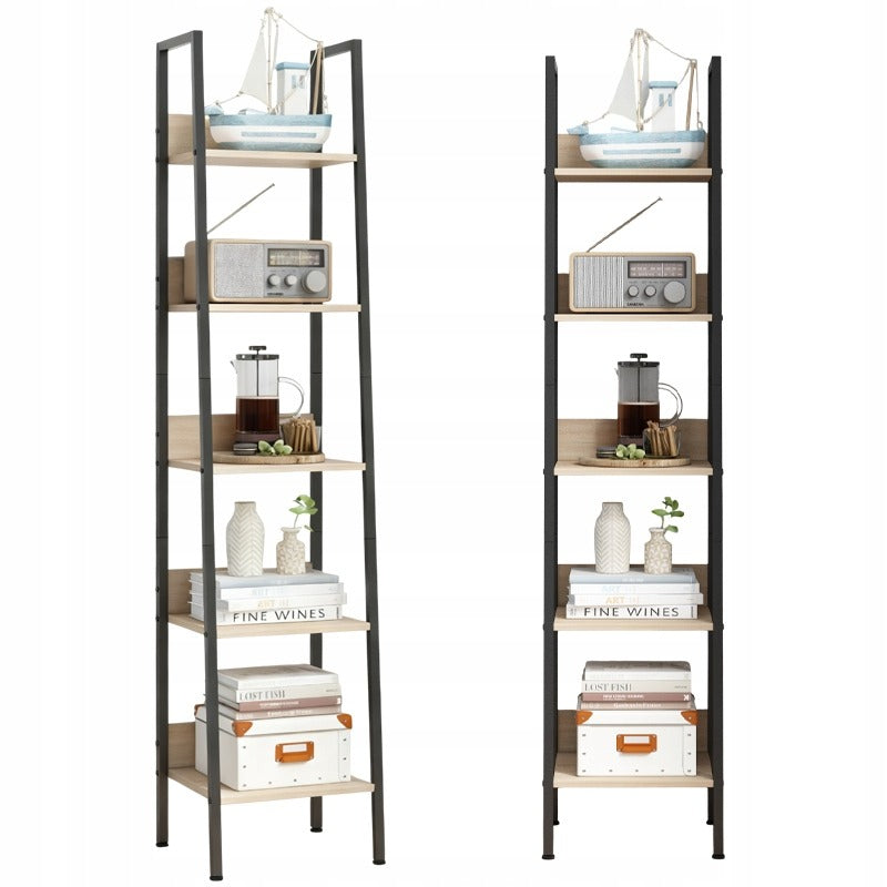 Bibliotecă industrială înaltă – maro deschis, 5 rafturi, stil scară