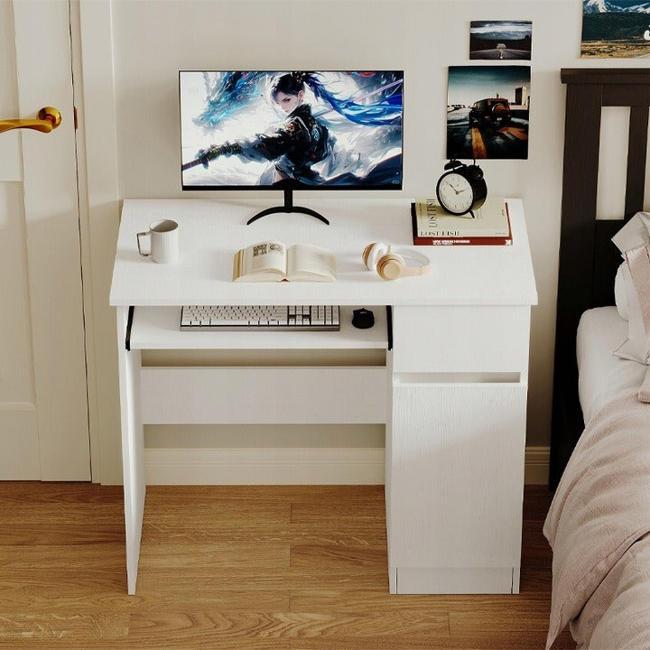 Birou alb pentru computer – birou modern pentru tineri, cu sertar și raft