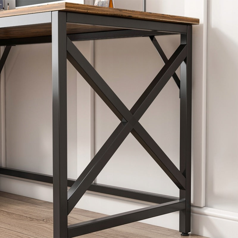 Birou industrial pentru computer, masă maro rustică, cadru metalic, stil loft
