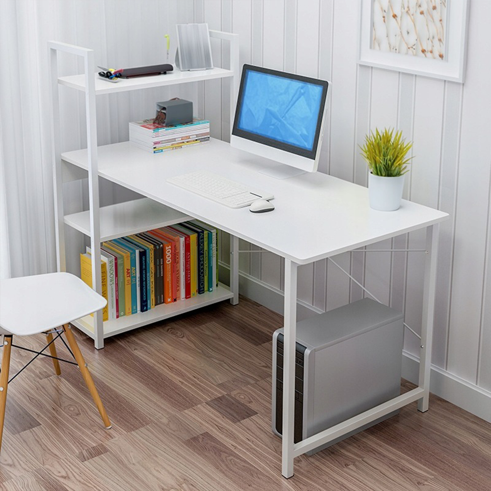 Birou modern alb cu rafturi laterale - 120x55x72 cm - ideal pentru biroul de acasă