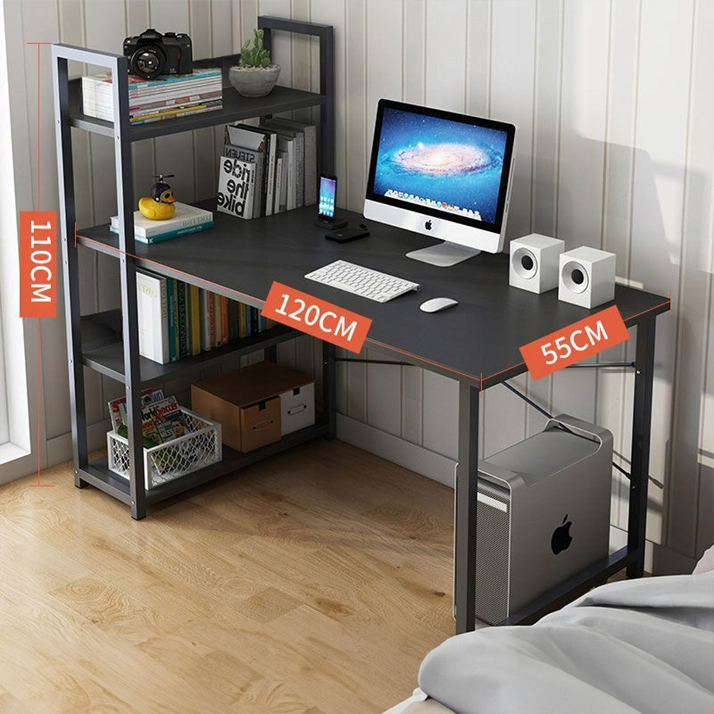 Birou modern pentru tineri cu raft încorporat - 120x55x110 cm, 3 rafturi, MDF, negru