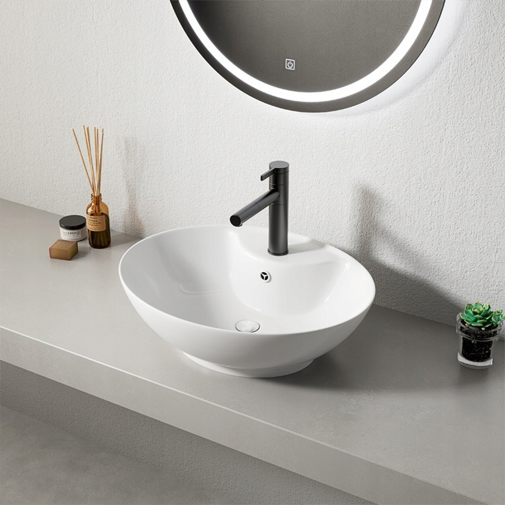 Alege eleganța și funcționalitatea cu acest lavoar de înaltă calitate, realizat din ceramică sanitară, cu formă ovală și dimensiuni de aproximativ 50x38 cm. Cu un finisaj alb lucios, linii curate și orificiu de preaplin integrat, acest model este ideal atât pentru băi private, cât și pentru spații hoteliere sau comerciale.