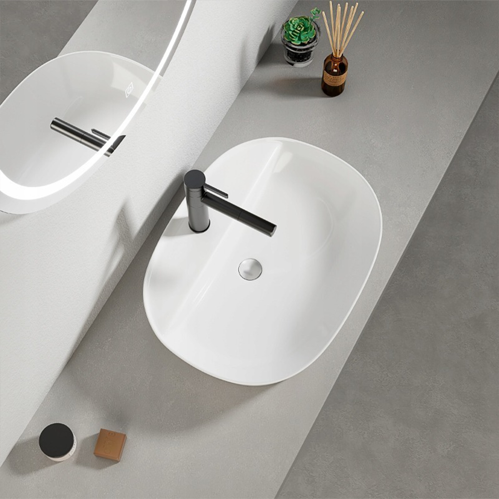 - Lavoar oval alb din ceramică pentru montaj pe blat