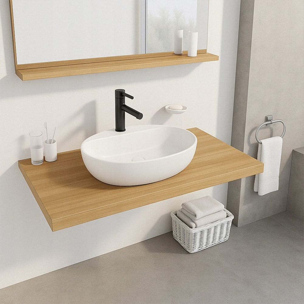 Forma ovală și dimensiunile generoase de 50 x 38 cm oferă confort în utilizare zilnică, iar orificiul standard de 35 mm permite montarea rapidă a unui robinet cu bază. Suprafața albă lucioasă oferă un aspect curat și sofisticat, perfect pentru băi moderne, scandinave sau clasice.