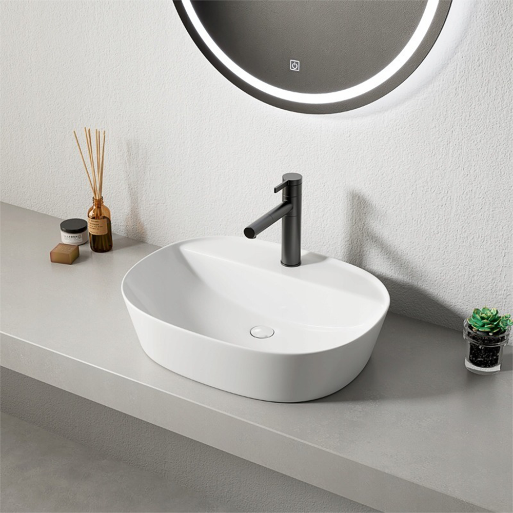 Chiuvetă ovală din ceramică albă lucioasă pentru blat - 50x38 cm, cu deschidere pentru robinet