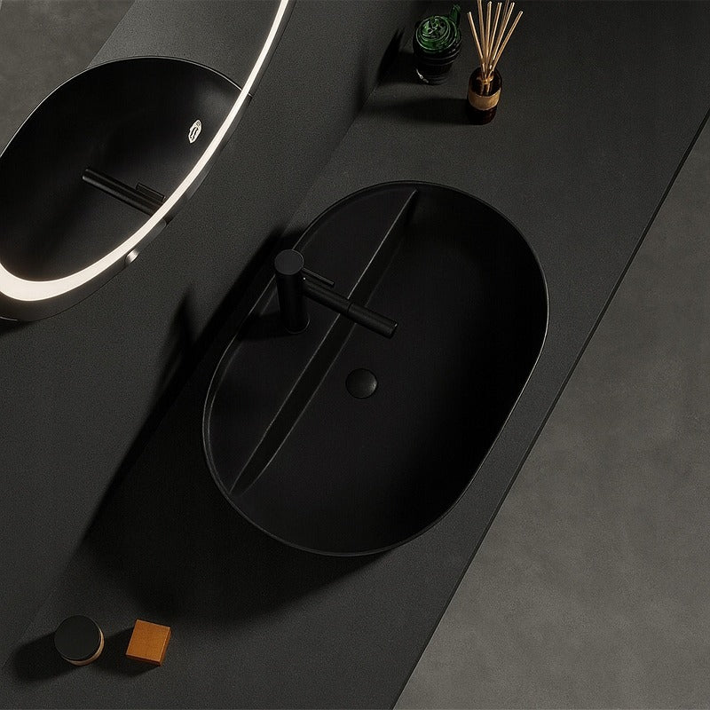 Chiuvetă ovală din ceramică neagră cu perforații mare 60 cm