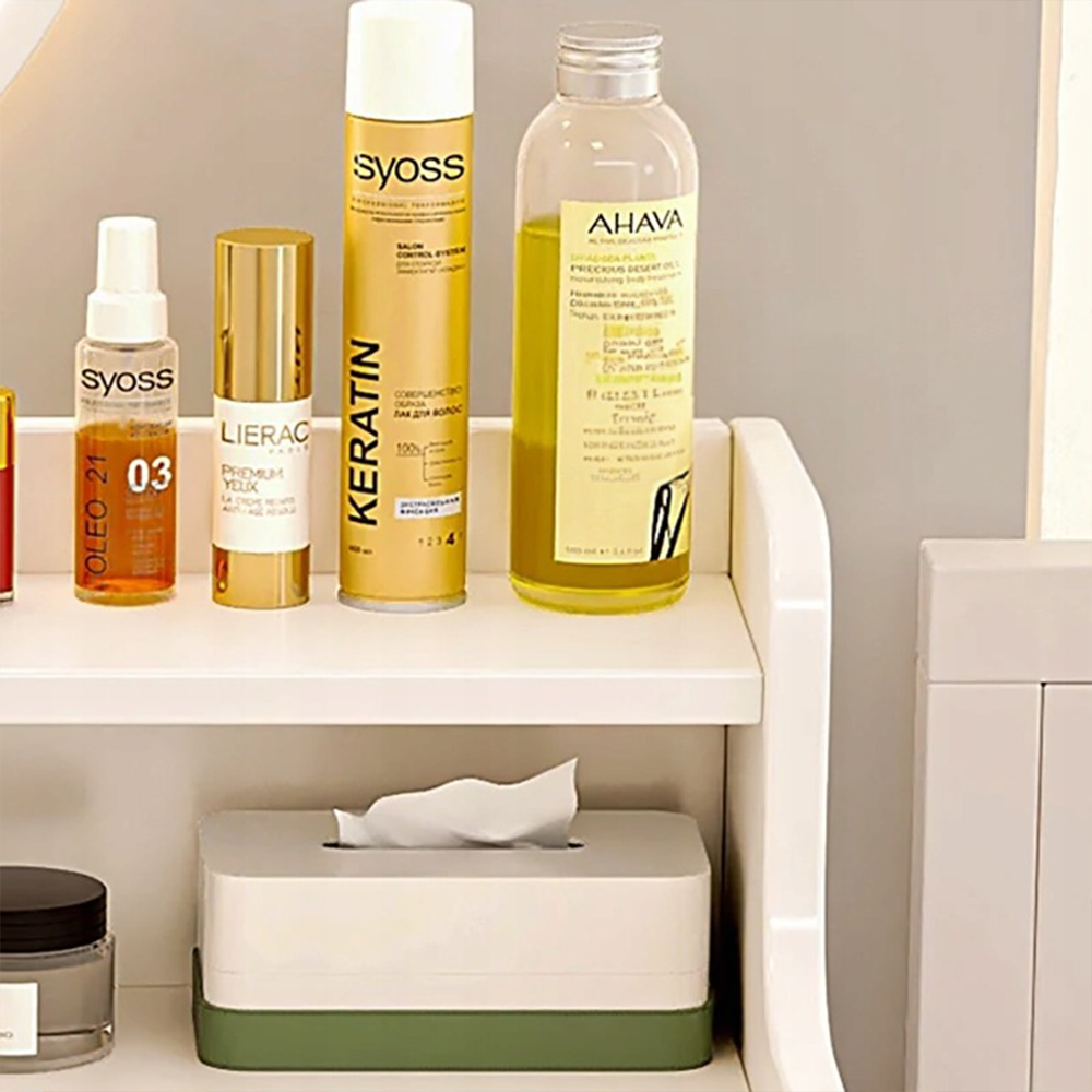 - Sertar spațios – perfect pentru produse cosmetice, perii, bijuterii și alte accesorii