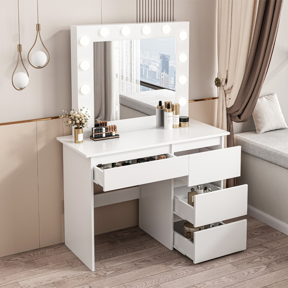 Masă de toaletă modernă albă cu iluminare LED - 90x140x40 cm, stil elegant pentru dormitor sau salon