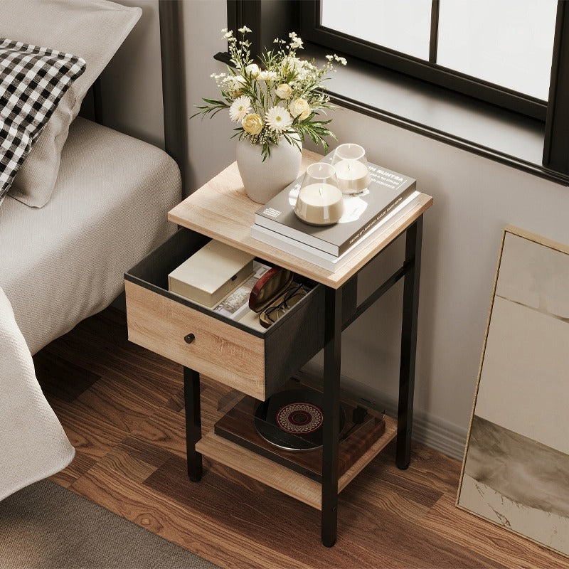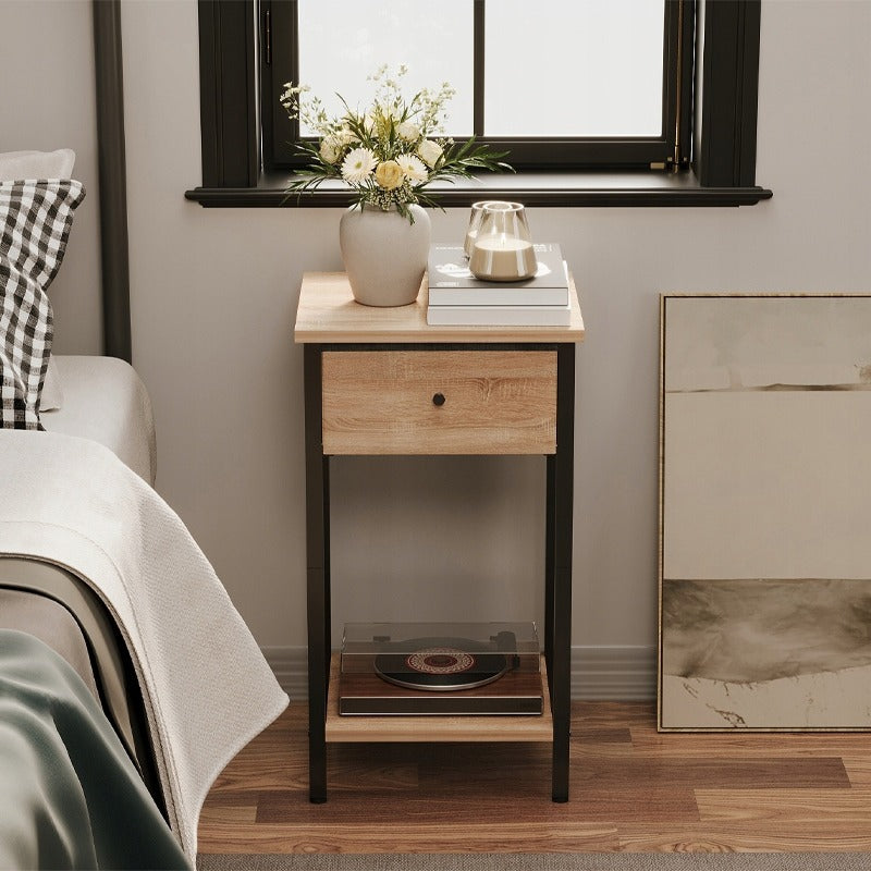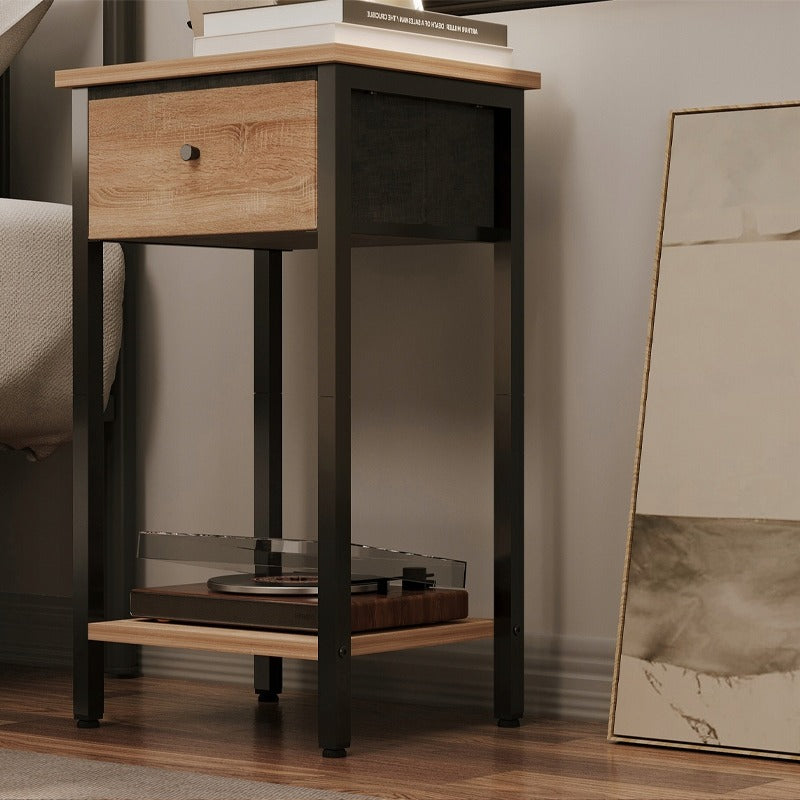 Noptieră cu sertare și raft, maro deschis, stil industrial loft, 51 cm