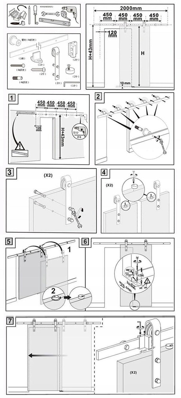Sistem de uși glisante tip hambar, set de feronerie retro pentru uși glisante de 2 m